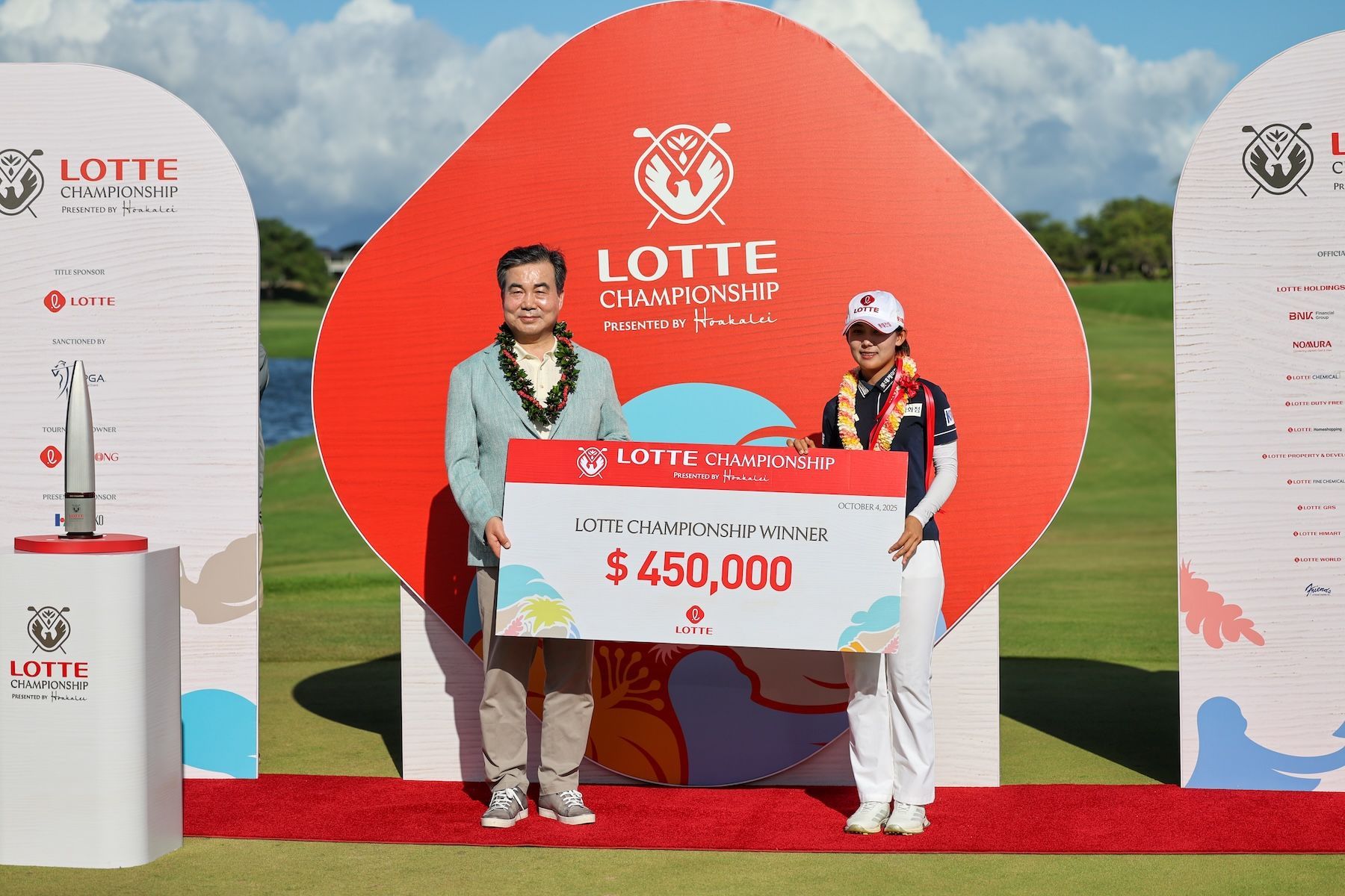"This is my dream," Hwang said through a translator. "Finally, I achieved my dream here at the LOTTE Championship, and I also very much look forward to my future as well in the LPGA. I would like to express my deepest gratitude for LOTTE for inviting me.”